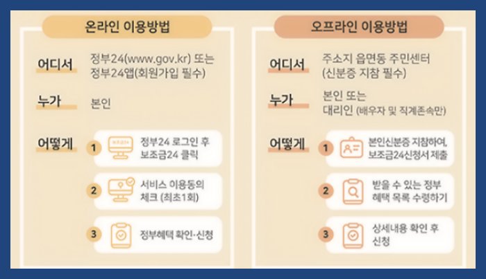 온라인 확인이 어려운 분은 해당 커뮤니티 센터에서 "보조금 24"와 동일한 서비스를 제공받을 수 있습니다.